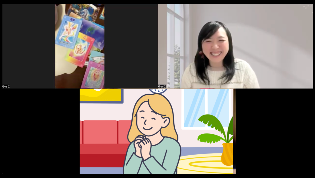 方法:zoomで直接、写真+メッセージでテキストのやりとり等、ご自由に選べます。